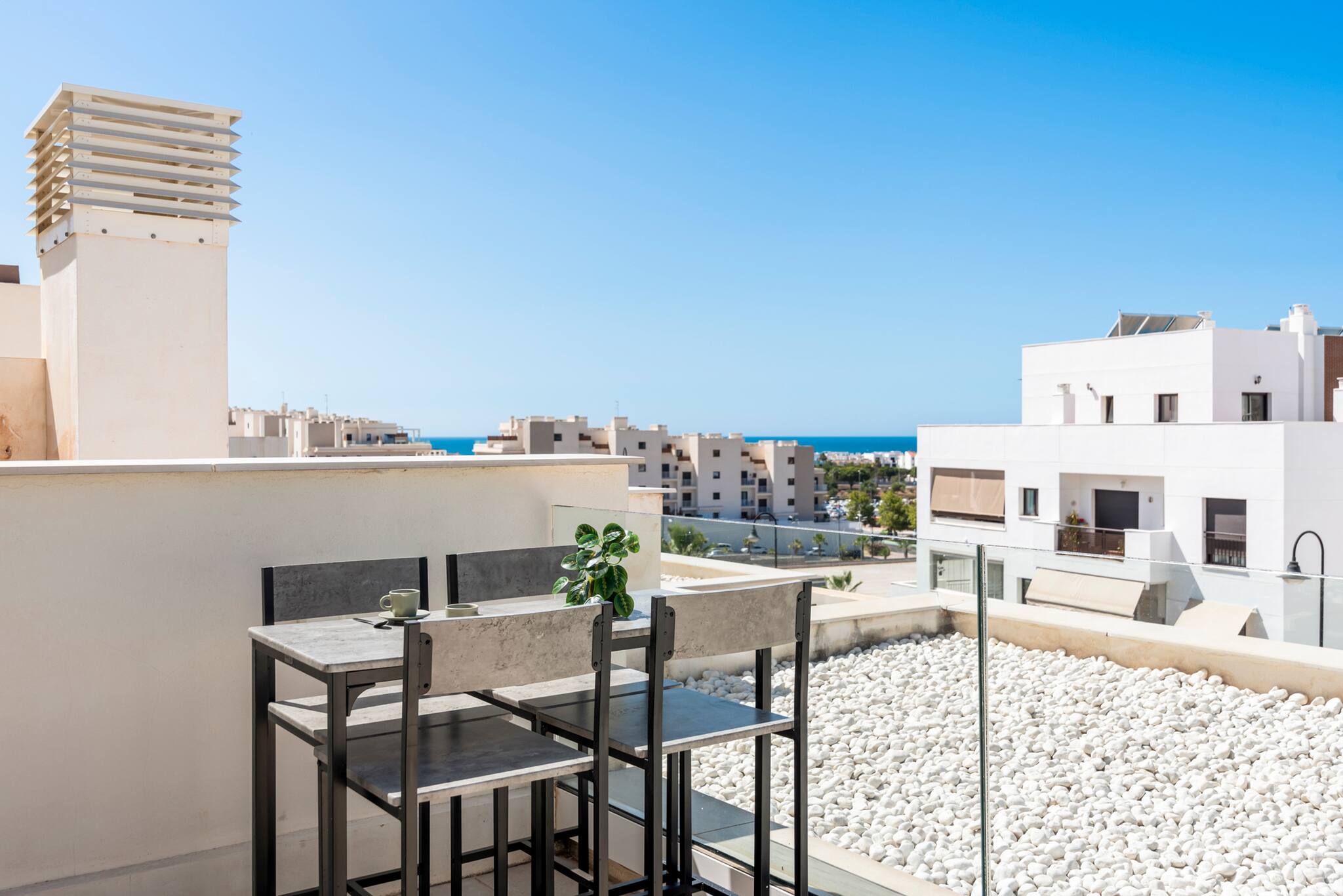 Buiten kunnen gasten genieten van hun eigen kleine privézwembad, perfect om af te koelen op warme zomerdagen, evenals toegang tot grote gemeenschappelijke zwembaden met ligbedden op de begane grond van de urbanisatie, of gebruik maken van de volledig uitgeruste sportschool op de eerste verdieping.