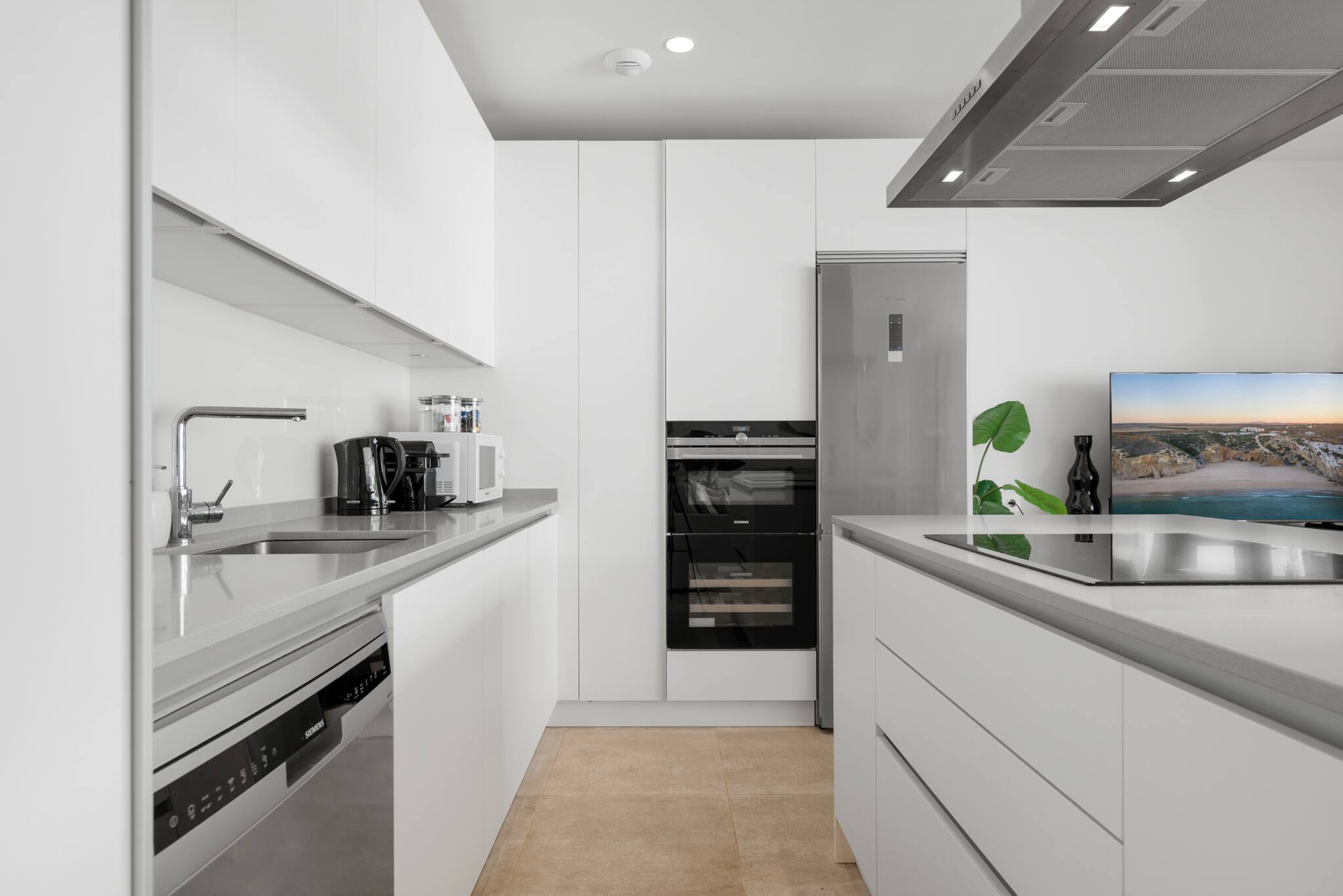Stap binnen en ervaar hoe de open indeling en premium afwerkingen een lichte, ruime sfeer creëren door het hele huis. Of je nu ontspant in de comfortabele woonkamer, geniet van een maaltijd in de strakke eetruimte, of snacks bereidt in de volledig uitgeruste keuken binnen of buiten, elke hoek van deze stadswoning is ontworpen met ontspanning in gedachten. Op de bovenste verdieping vind je een rustig dakterras waar je een avonddrank kunt nuttigen en de vredige omgeving kunt bewonderen.